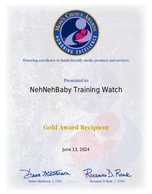 We are thrilled to share some exciting news with you. The NehNehBaby Training Watch has been awarded the prestigious Gold Award at the Mom's Choice Awards! This recognition highlights our commitment to providing top-quality, family-friendly products.
