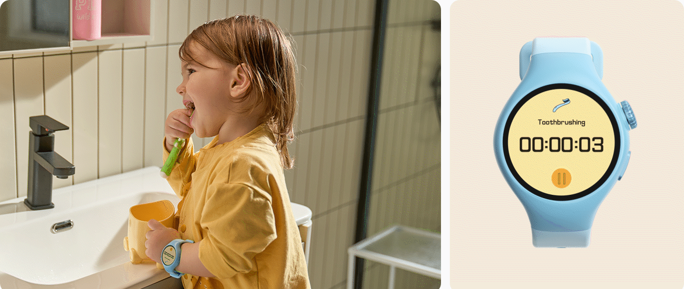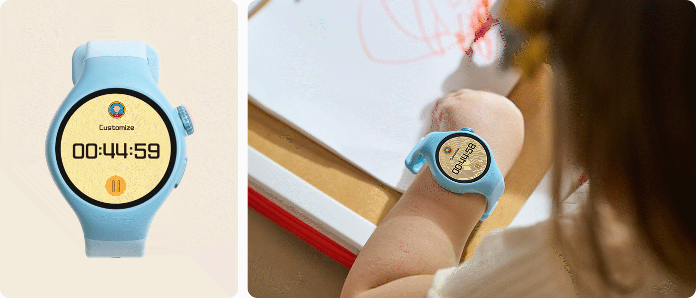 Our watch helps children manage daily tasks like brushing teeth, reading, and more with set timers, offering musical or vibrational alerts. This feature promotes independence, understanding time management, and smoothens daily routines. It also aids in creating unspoken agreements on task durations, making transitions easier without rush or resistance. The watch’s custom modes further adapt to various activities, fostering autonomy and mutual understanding between parents and kids by setting clear time limits for tasks.
